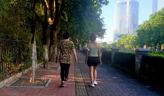 孙如(左)和57岁的“闺蜜”一同晨练,受访者供图