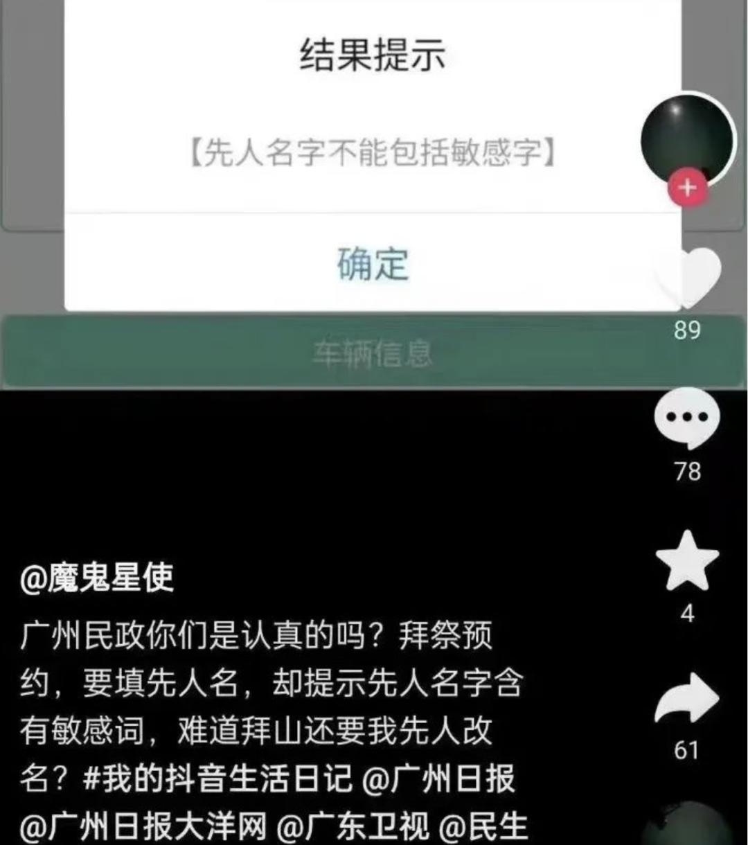 预约祭扫被提示先人姓名有敏感字,改名要本人到场吗
