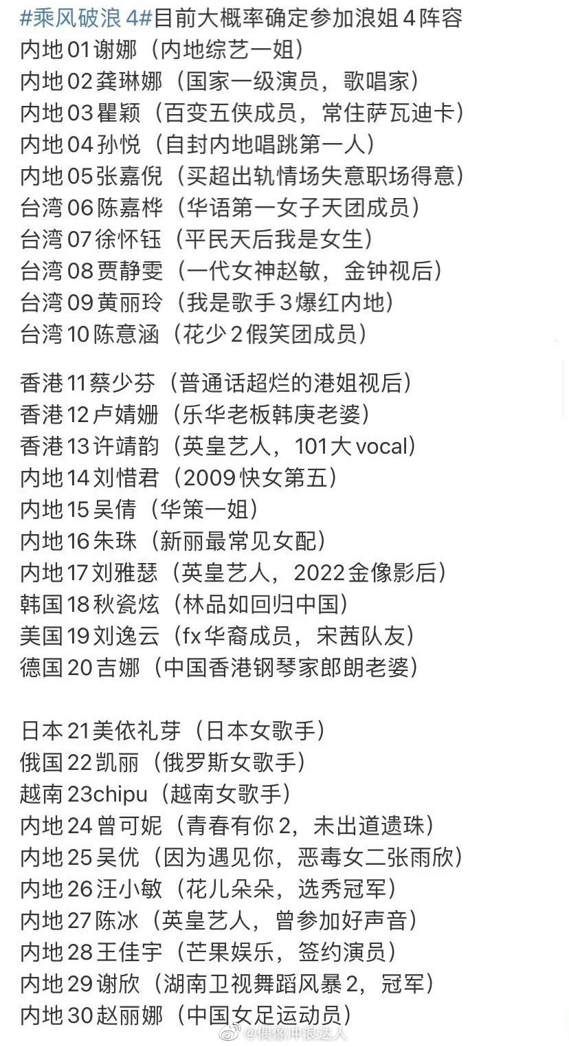 乘风破浪4明星阵容都有谁?网传乘风破浪4阵容名单多位外
