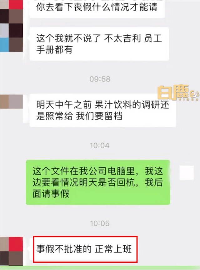 5月7日,浙江杭州一女子发文称自己的大姨夫去世,向公司请假不被批准。
