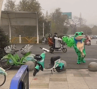发现有人穿着“网红蛙”的人偶服