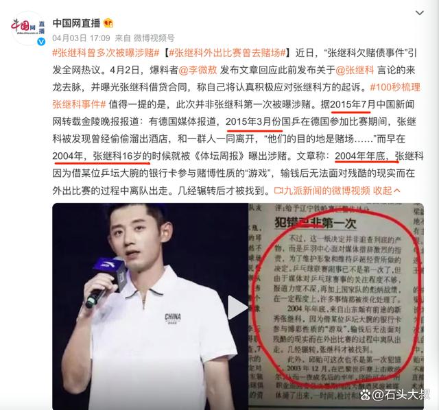 但是,从目前的一些信息来看,张继科曾多次被曝涉赌,最早的一次是在2004年,当张继科还是16岁的时候,张继科因为借某位乒坛大腕的银行卡参与赌博性质的“游戏”,输钱后无法面对残酷的现实而在外出比赛的过程中离队出走。几经辗转后才被找到。