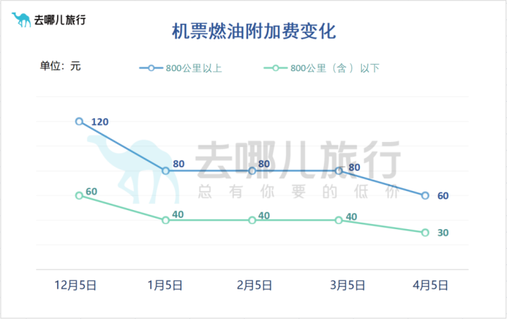 此前,国内800公里以上和以下航段成人旅客的燃油附加费收取规范分别为80元和40元。这是2023年第2次降燃油附加费,较2022年末已下降一半。