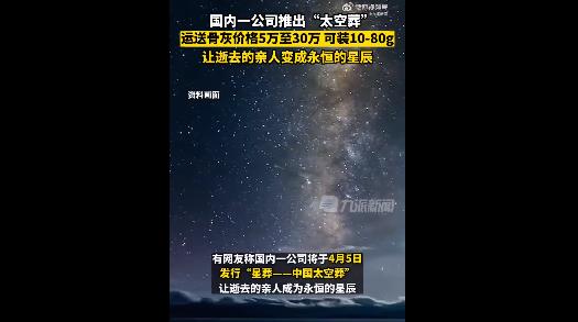 中国公司将推出“太空殡葬” 网友:这是真的“升天”