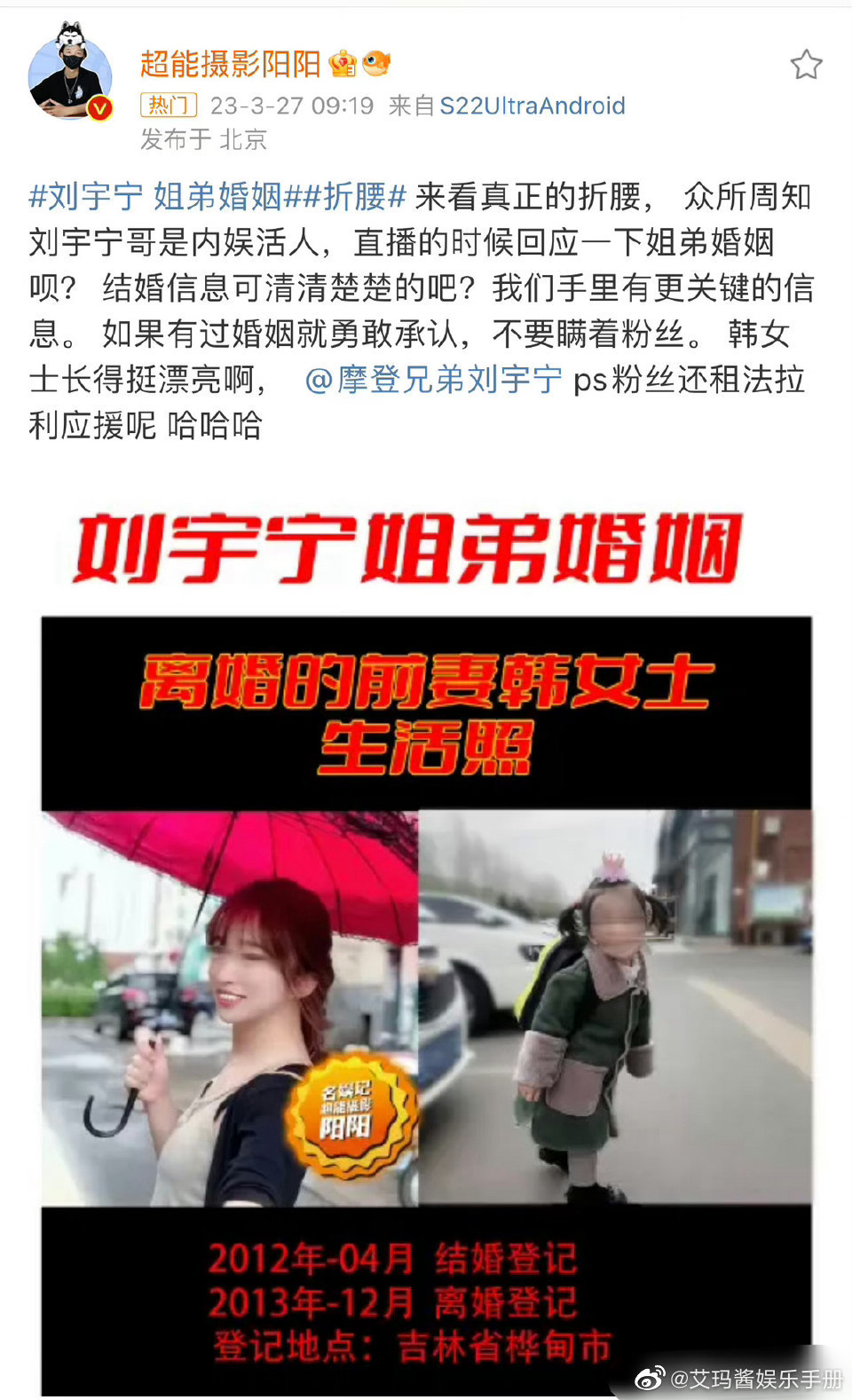 超能摄影阳阳爆料刘宇宁姐弟婚姻且有一孩子 喊话刘宇宁