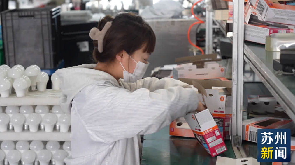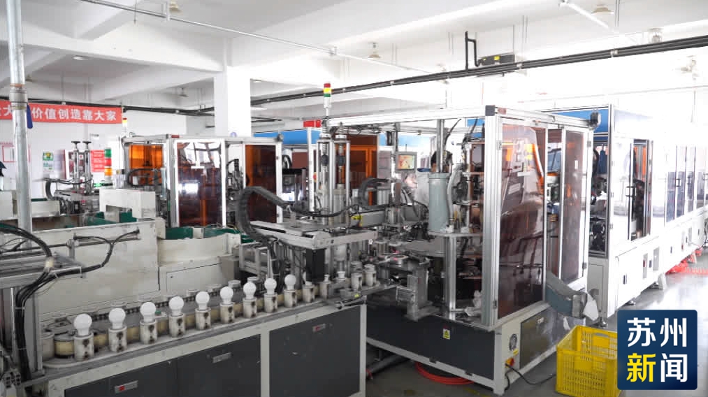 上午,在太仓红壹佰照明股份有限公司的出产线上,自动化设备与操作工人正分工协作,将一批批LED灯泡拼装和打包。