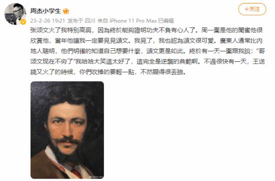 2 月 27 日早晨,# 周杰说张颂文火了我特别高兴 # 的话题登上微博热搜榜第四,引发不少网友热议。