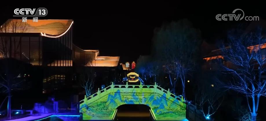 9米高、500米长的水云画廊、五彩斑斓宛如彩练的光影水道、独具地域风情的皮影互动景象……河北廊坊发挥京津冀协同开展纽带区域优势,首条集滨水休闲、美食好物、光影演艺等特征于一体的沉溺式光影夜游文明商街,招引了许多游客前来打卡。
