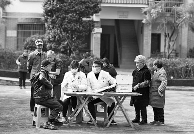 在贵州省赤水市长沙镇笃睦村,医护人员为乡民进行健康检查。新华社发