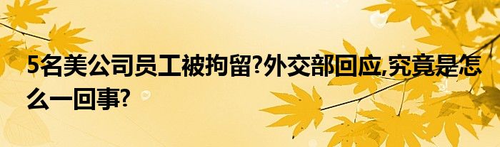 大家好,大家对5名美公司员工被拘留?外交部回应,究竟是怎么一回事?很关注,下面整理下相关的信息,现在让我们一起来看看吧!