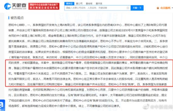 天眼查App显示,近日,上海雅銮房产经纪有限公司与上海思和资产经营管理中心(有限合伙)中介合同纠纷一审文书公开。