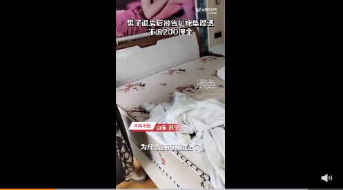男子退房后被告知床垫湿透不退押金 酒店:返回查验后经