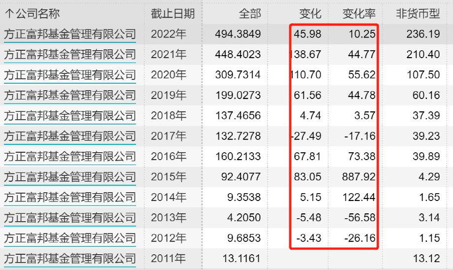 公司办理的完善,也带动了方正富邦基金规划的稳健增加,经营办理的成效闪现。