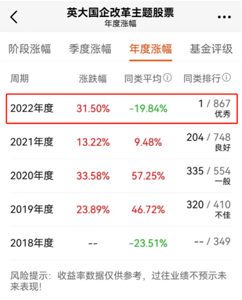 值得一提的是,汤戈此前在管的英大国企改革是2022年股基冠军。该基金以31.5%的报答,在2022年全年大跌20%的商场环境中,闻名股基冠军,汤戈任期1年半总报答超60%,到上一年年底,基金规划短短一年间也从0.71亿元增至4.2亿元。
