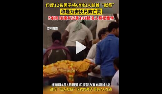 4月5日,据印媒报道,印度警方宣布逮捕5名被控进行“活人献祭”仪式的男子,另有7人在逃。当地警察局长表示,52岁的帕塔克策划了这起杀戮,称是为纪念他兄弟的忌日,安抚死者的灵魂。据了解,2014年至2021年间,印度国家犯罪记录局在共记录了103起活人祭祀案件。