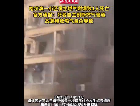 哈尔滨1死多伤爆炸事故系自杀所致 自主割断燃气管道故意