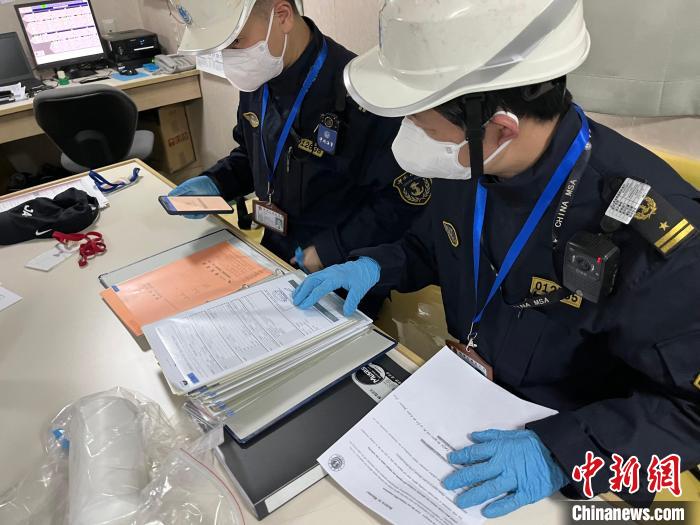 海事执法人员展开现场查看。 洋山港海事局供图