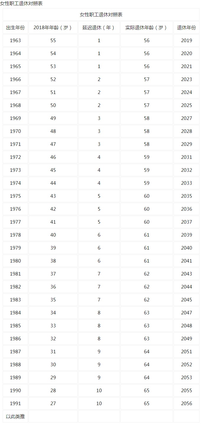 按照退休年龄方案:从2018年开始,女性退休年龄每3年延迟一岁,男性退休年龄每6年延迟1岁,直到2045年同时达到65岁。