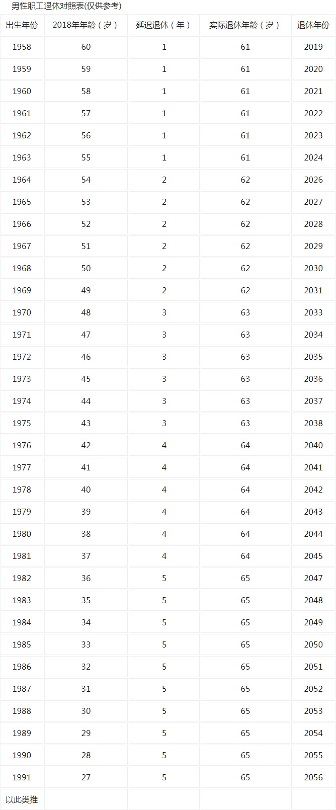 2、从2022年开始,1960年出生的男性职工和居民推迟6个月领取养老金,以此类推,到2030年实现男性职工和居民65岁领取养老金。