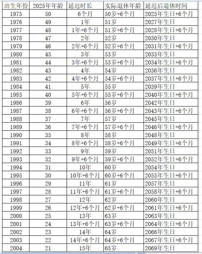 3、男性延迟退休对照表(预估),2054年第一批65岁退休人员产生
