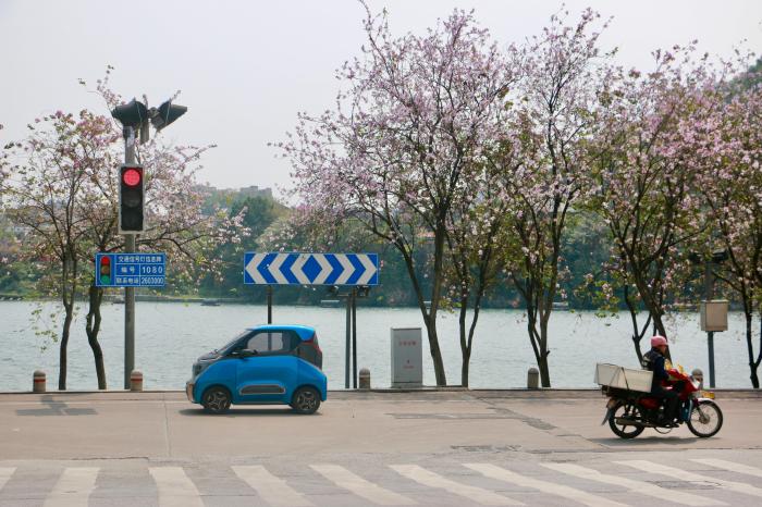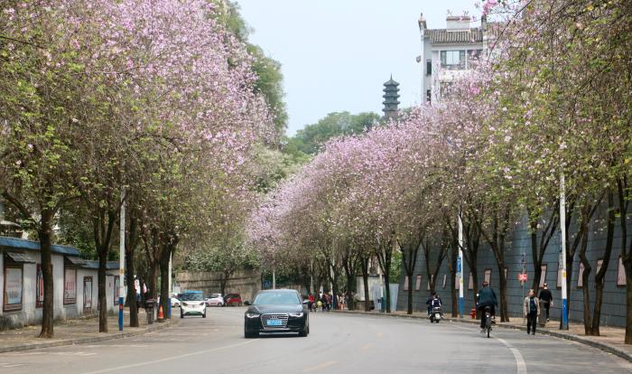 在交际渠道上看到柳州满城洋紫荆怒放风光的冯祯雨,特地从湖南长沙市坐动车到柳州赏花。她表明:“乘坐当地推出的赏花专线公交车,领会花开满城的美景,感触春天的夸姣和活力,非常愉悦。”