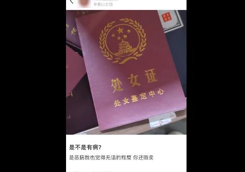 江苏一景区有店家售卖处女证 网友:是不是有病,以为自