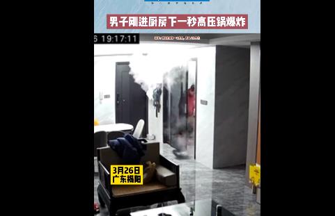 3月26日,广东揭阳。一男子刚进厨房下一秒高压锅突然爆炸。男子妻子王女士称: 这个高压锅是新买的,当时在煮粥第一次使用,老公去厨房关小火,没想到它突然爆炸了,把油烟机炸坏了,锅里的白米粥蹦的到处都是,万幸老公没受伤。
