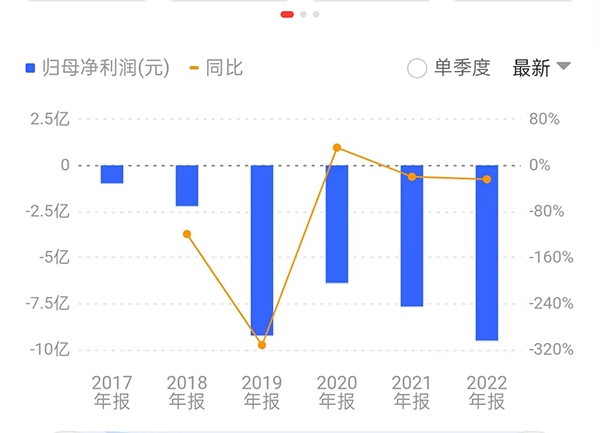 记者注意到,自迈威生物建立以来,公司一向处于亏本状况。数据显现,2017-2022年,迈威生物的归母净利润分别为-1.03亿元、-2.25亿元、-9.28亿元、-6.43亿元、-7.70亿元、-9.55亿元,六年累计亏本36.24亿元。
