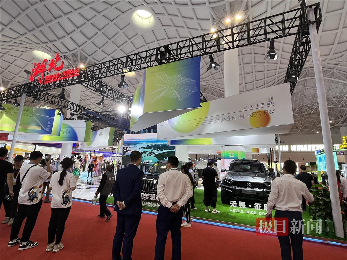 在湖北展区最显眼的方位,一辆银黑色的猛士奢华电动越野车招引了许多人的目光。