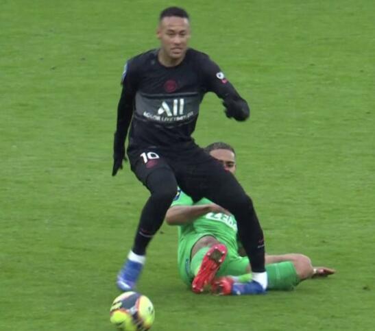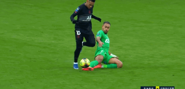 不得不说,圣埃蒂安本场比赛的防守动作是真的很大,内马尔在上半场就被阿尔法-西索科在边路凶狠飞铲导致倒地打滚。