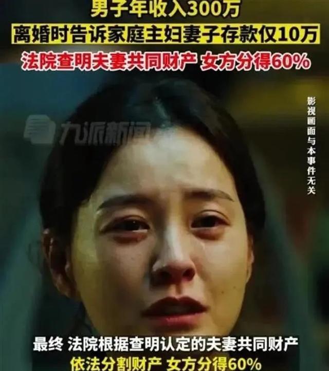 女方起诉离婚,男方说自己只有10万元存款。法庭调查发现,男方年收入高达300万,而作为家庭主妇的妻子,却对此毫不知情。