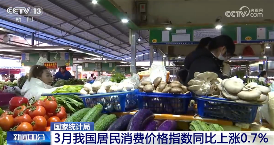 跟着出产日子继续康复,消费市场供应足够。3月份,我国居民消费价格指数(CPI)环比下降,同比上涨。从环比看,因为气候转暖、鲜菜上市量增加等要素影响,食物价格环比下降1.4%。非食物价格由上月下降0.2%转为相等。非食物中,因为出行需求继续康复,住宿和飞机票等价格同比上涨。从同比看,CPI上涨0.7%,涨幅比上月回落0.3个百分点。