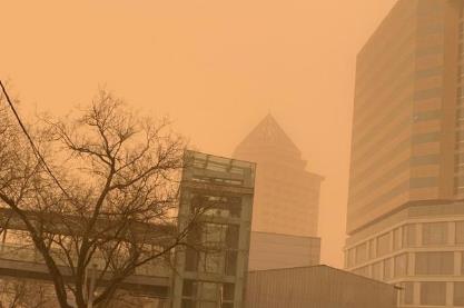 而据当地网友拍照的视频显现,受沙尘气候影响,天空现已变成了橙赤色,建筑物若有若无,恍若瞬间天黑,形同灾祸电影里边的末日常见,十分稀有,也适当骇人。