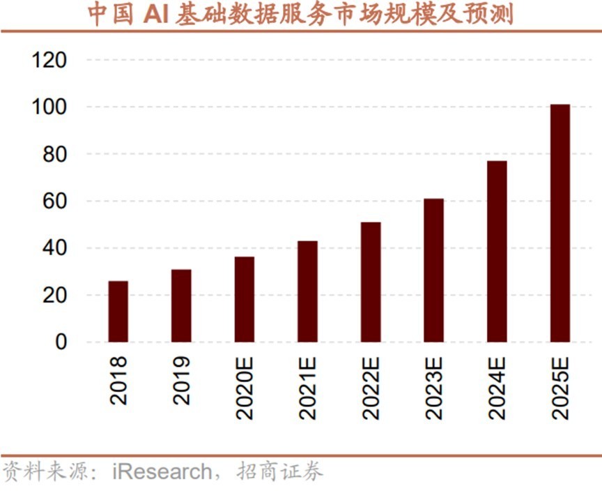 艾瑞咨询数据显现,包含数据搜集、数据处理(标示)、数据存储、数据发掘等模块在内的AI根底数据服务商场,将在未来数年内持续增加,到2025年,国内AI根底数据服务商场的全体规划估计将到达101.1亿元,全体商场增速将到达31.8%(2024-2025年)。