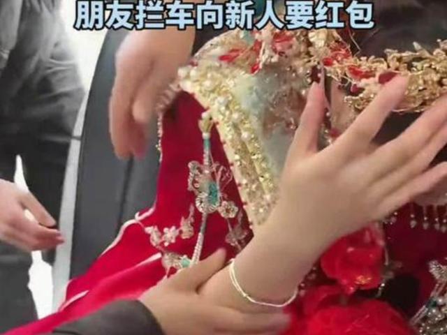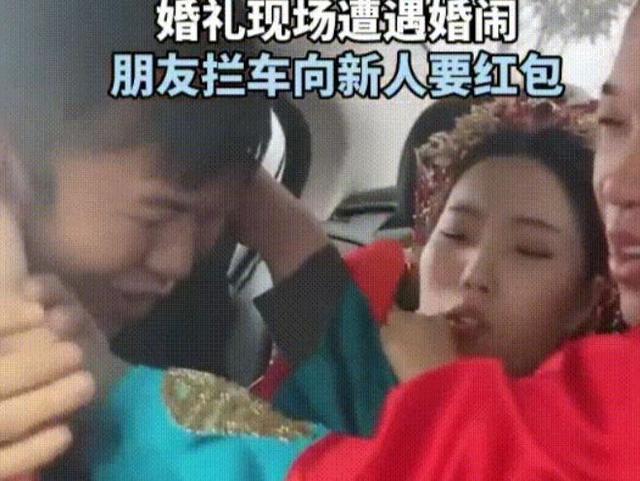 新人结婚遭朋友拦车袭胸要红包,新娘哭了