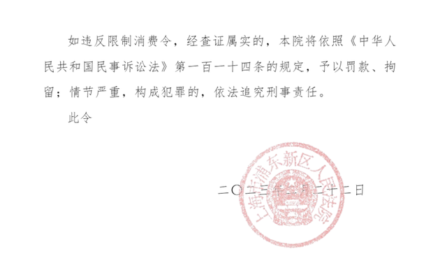 据中国执行信息公开网,上海市浦东新区人民法院近日发布限制消费令,限制览海控股及览海控股法定代表人密春雷不得实施高消费及非生活和工作必需的消费行为。