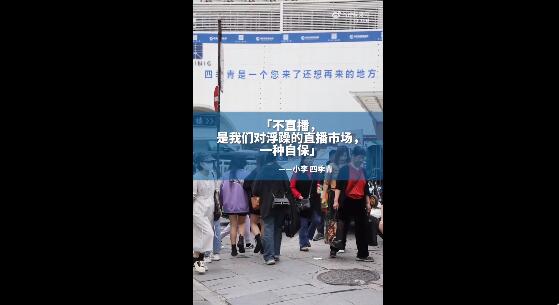 今年3月6日起,“中国服装第一街”杭州四季青的部分市场宣布,全面禁止商家在铺内开启直播销售。记者走进市场,几乎所有商户都聘请了“穿版模特”,在铺内开启小型时装秀,现穿现脱,客户现场举手订单。四季青常青服装市场管理处办公室的工作人员说,禁止直播非管理方的独断,而是应商户多次要求而颁布的新规。有商户说:“不直播,是对抗浮躁直播销售的一种自保。”