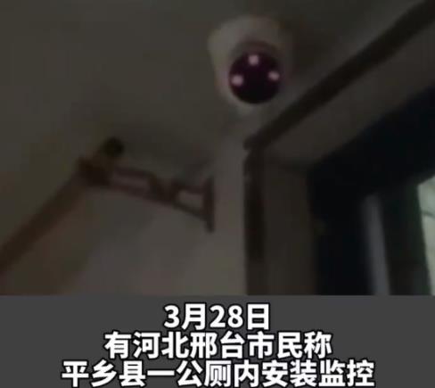 3月28日,网曝河北邢台平乡县广场南边公共厕所安装监控,网友质疑泄露个人隐私。视频中,摄像头位于男厕内小便池上方。