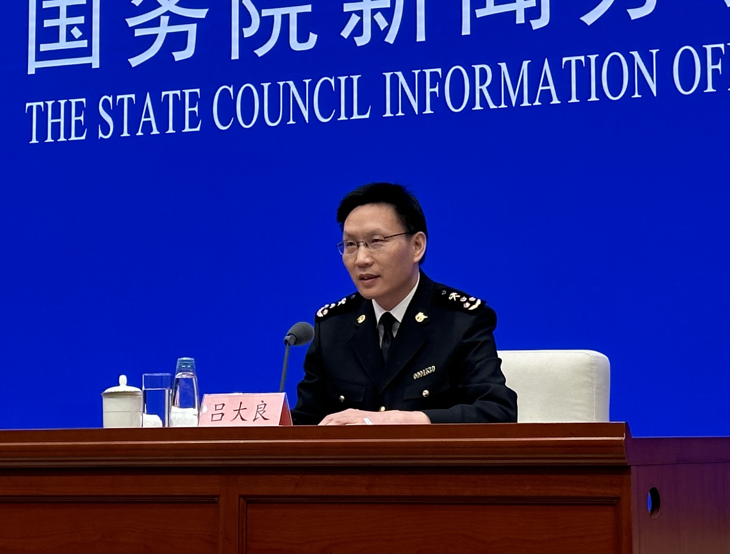 海关总署新闻发言人、统计分析司司长吕大良汹涌新闻记者滕晗摄