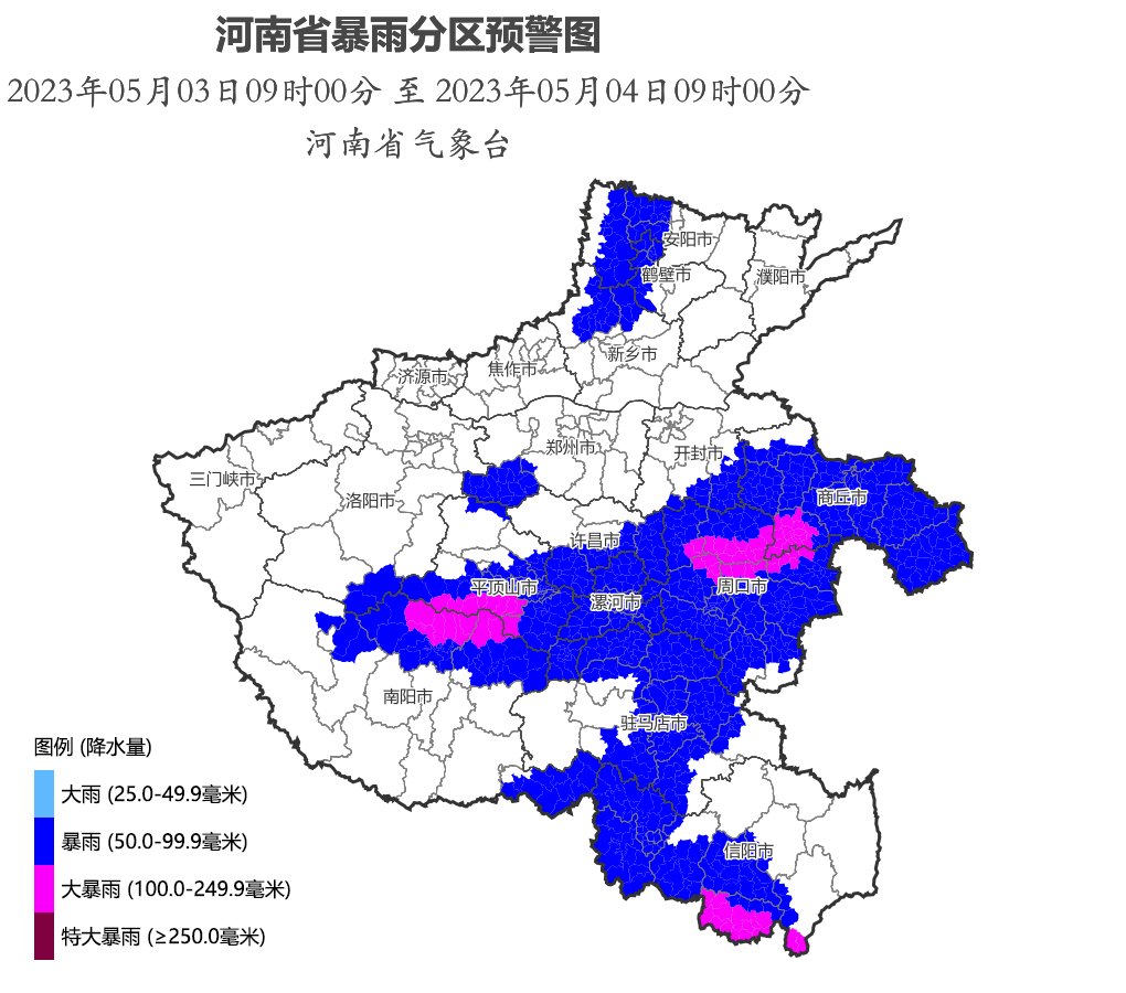 本文转自【河南气象】;五一假期最后一天返程高峰和大范围降水“碰了个正着”!河南省气象台今天上午9时发布暴雨蓝色预警↓↓↓暴雨蓝色预警预计5月3日9时至4日9时,南阳北部和东南部、信阳西部和南部、
