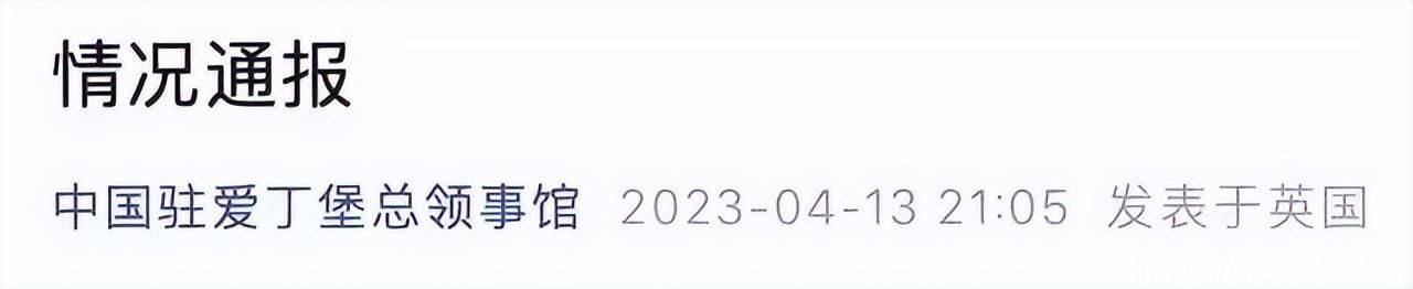 4月13日晚,中国驻爱丁堡总领事馆发布情况通报称:4月11日,伦敦某大学中国留学生张某在英国本奈维斯山步行时失联。通报表明,驻爱丁堡总领馆得悉后第一时间与苏格兰警方多个部分取得联系,要求当即展开搜救行动