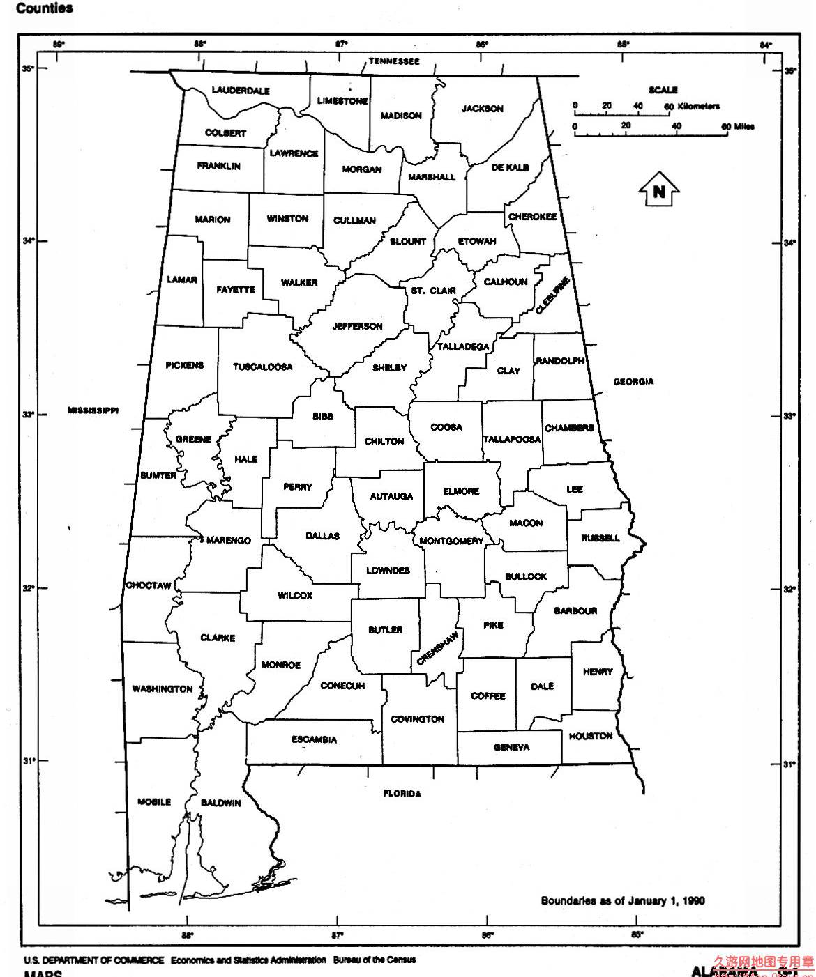 2.美国Alabama州各政区简图下载说明:鼠标移动到地图上方,右键->图片另存为->选择保存的路径;