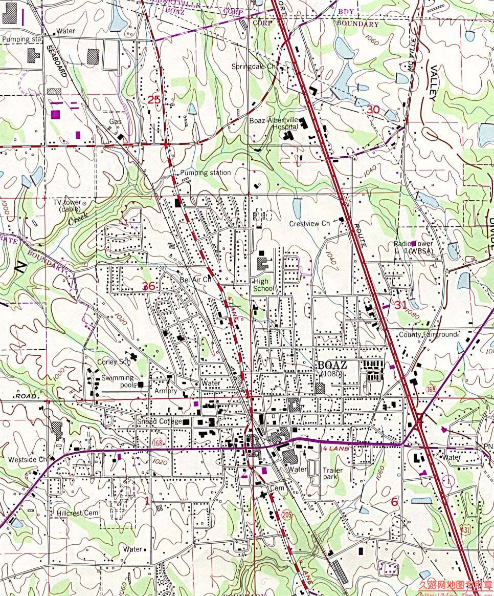 2.美国Alabama州Boaz城区图下载说明:鼠标移动到地图上方,右键->图片另存为->选择保存的路径;
