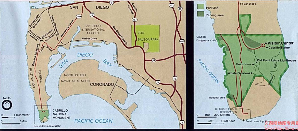 2.美国加利福利亚州Cabrillo National Monument位置图下载说明:鼠标移动到地图上方,右键->图片另存为->选择保存的路径;