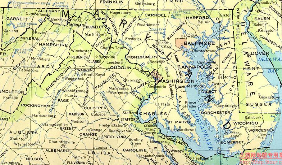 2.美国Maryland州政区图下载说明:鼠标移动到地图上方,右键->图片另存为->选择保存的路径;